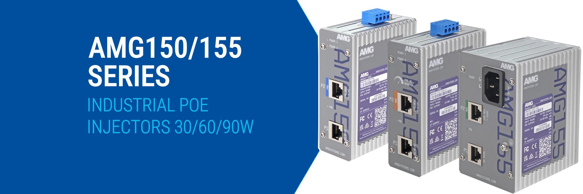 AMG Systems of the United Kingdom and USA introduces the AMG150/155 series of cost-effective single-channel industrially hardened PoE injectors that can support Ethernet speeds from 10Mb to 10Gb and inject 30W, 60W, or 90W power for use by PoE powered devices.
