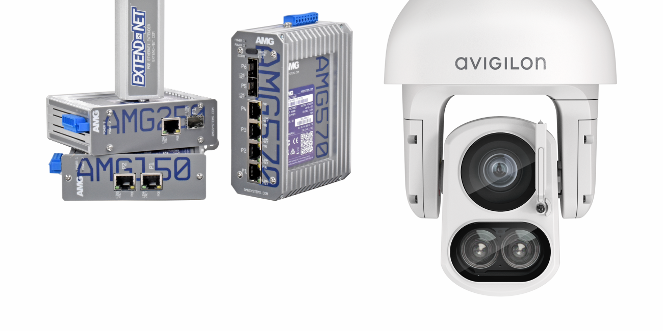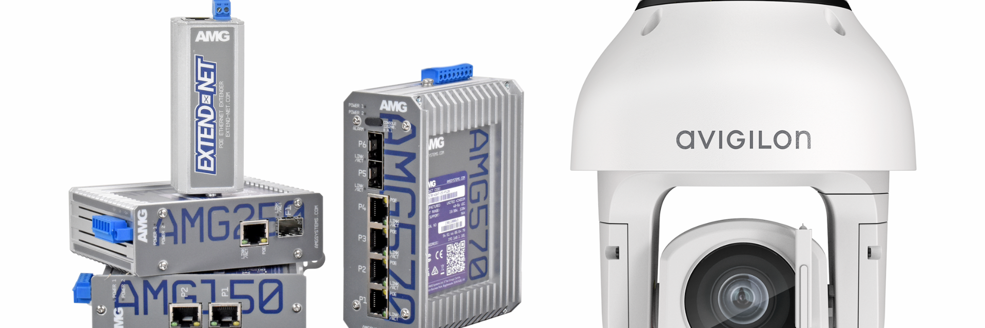 A pair of AMG160-1F-1EU Extend-Net™ units were able to maintain full operation of the Avigilon PTZ to a distance of 250 meters over CAT5 using PoE Passthrough. In this instance the PoE Power was provided by using an AMG150-2GBT-P180.
