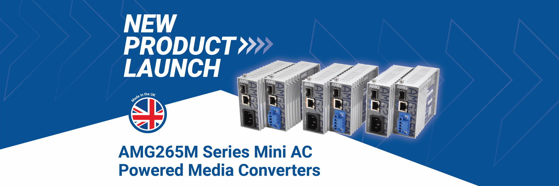 Tom Exley, AMG Technical Director adds “The AMG265M continues our quality standard. Our engineering team looked at what was currently available, identified weaknesses, and engineered the AMG265M to overcome those weaknesses. Offering a media converter that requires no external power supply and can be easily connected to any available AC power supply is a simple solution for our customers and one less thing to potentially fail. The AMG265M has no equal in terms of this unique ultra-compact size, industrially hardened, with full 90W PoE capability, made in an ISO9001-certified facility, and most importantly, available when you need them. We believe in the quality and stand behind them with lifetime support. This media converter solves the density challenge, allowing the user to utilize more devices in a smaller area. Plus having a product made in the UK gives your network an added layer of security.”