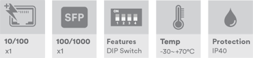 - All SFP ports are multirate 100Mb/Gigabit – support single and multimode, single or dual fiber options up to 120Km