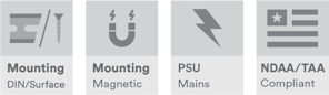 - DIN rail or wall mountable – quick to install and remove for maintenance (an optional magnetic mount is also available)
